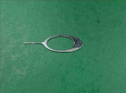 3)Pilih ukuran standar pada kepingan pengukur celah yaitu 0.5mm, seperti yang ditunjukkan pada gambar 5-28;Kepingan pengukur celah diletakkan sejajar dengan permukaan meja, lalu masukkan kepingan pengukur celah dari 2 arah mulai bagian atas, tengah, dan bawah, seperti yang ditunjukkan pada gambar 5-29. Lihat bagian kepingan pengukur celah apakah bisa dimasukkan atau tidak, lalu lihat apakah terdapat gesekan. Jika tidak dapat dimasukkan atau tidak terdapat gesekan, maka bisa dipastikan celah yang ditimbulkan kecil dari 0.5mm,maka bisa dianggap sebagai ponsel normal, jika tidak maka ponsel dinyatakan ponsel tidak normal.