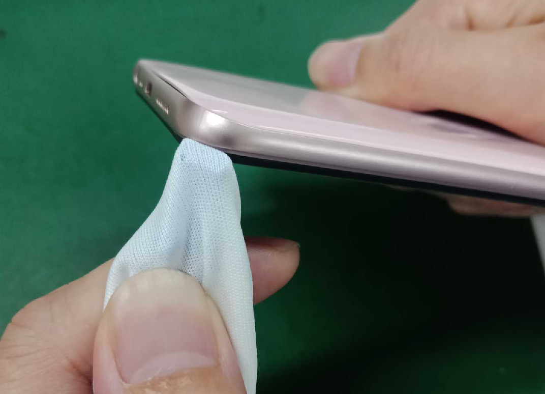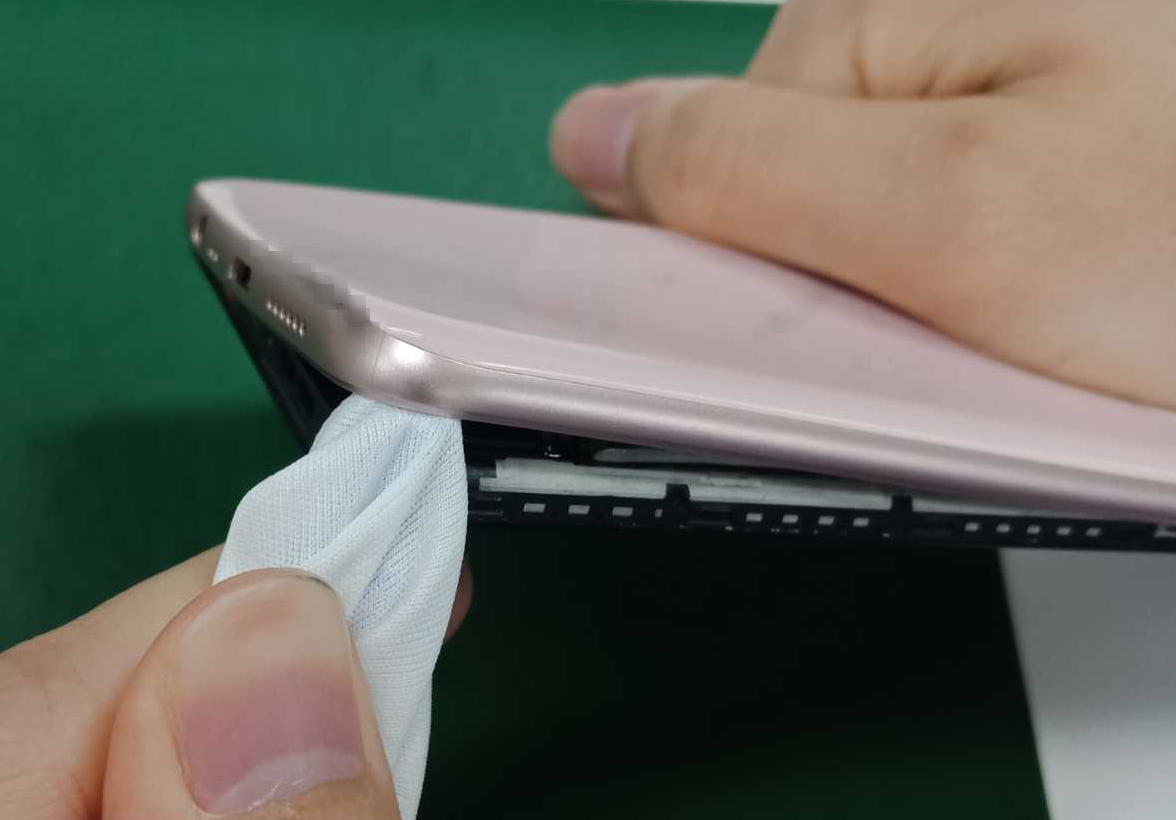 1)Terhadap ponsel yang memiliki perubahan bentuk yang jelas, dapat diletakkan terlebih dahulu pada permukaan yang datar, dengan mata telanjang untuk pengecekan awal, seperti yang ditunjukkan pada Gambar 5-26, kemudian gunakan alat pengukur celah sebagai langkah pengecekan berikutnya.