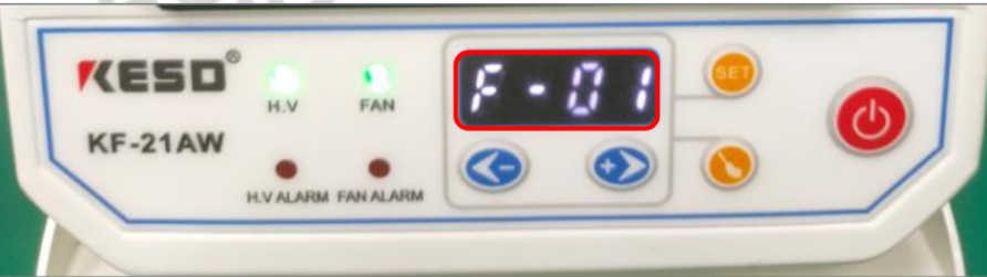 1) Pengaturan kisaran kecepatan angin, selama operasi pemeliharaan, gir kecepatan angin kipas ion diatur ke F-01, seperti yang ditunjukkan pada Gambar 2-4, yang dapat disesuaikan dengan menaikkan kecepatan angin dan menurunkannya dengan tombol kecepatan angin.
