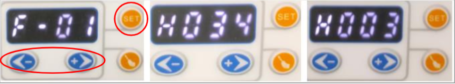 2) Pengaturan waktu pembersihan, waktu pembersihan waktu diatur ke 3 jam, kipas ion akan secara otomatis memulai program untuk membersihkan jarum pelepasan internal setelah 3 jam operasi terus menerus,(Jika sakelar daya untuk mematikan perangkat atau mematikan daya. Waktu 3 jam akan dihitung ulang). Langkah-langkah operasi pengaturan pembersihan timer ditunjukkan pada Gambar 2-5. Tekan tombol "SET", layar akan beralih dari kecepatan angin F-01 ke antarmuka penghitung waktu (H034 pada gambar, yang berarti 34 jam); tekan tombol "SET" untuk mengganti waktu Ratusan, puluhan, dan digit, gunakan tombol plus dan minus untuk menyesuaikan ukuran angka; waktunya diatur menjadi 3 jam, antarmuka menampilkan H003, klik tombol konversi, antarmuka menampilkan kecepatan angin, operasi selesai.