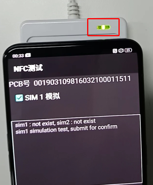 Karena ukuran barcode pada Mainboard / PCB cenderung lebih kecil, maka saat memindai untuk jarak antara Mainboard/PCB dengan pistol pemindai perlu sedekat 4~5cm, lalu memastikan lampu garis merah menembak akurat ke barcode untuk proses pemindaian, seperti yang ditunjukkan pada Gambar 7-6.