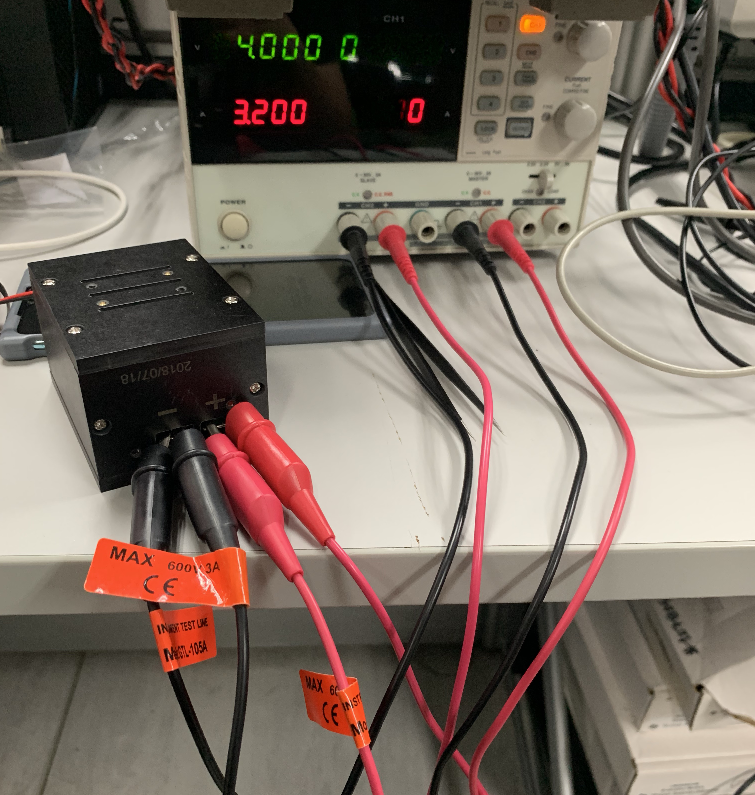 1) Nyalakan dua saluran dari tegangan yang diatur pada saat yang sama, pengaturan input tidak boleh berubah (4V 3.2A);
