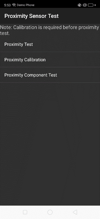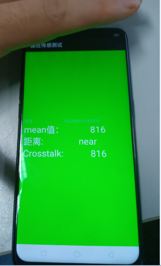 4.2.5 Masuk ke antarmuka “Proximity Test" (untuk menguji fungsi sensor jarak); antarmuka menampilkan hitam adalah normal dan hijau berarti tidak normal (Gambar 4);