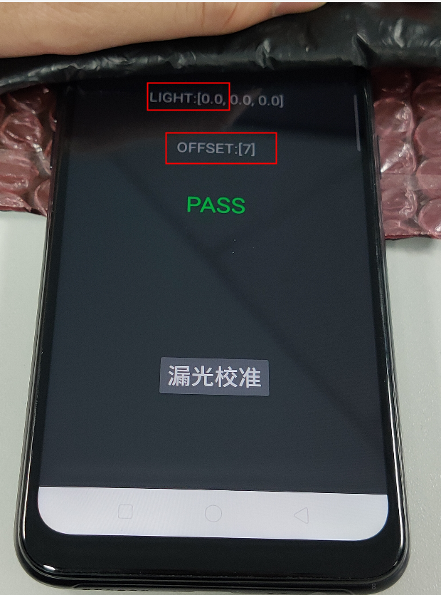 4.1.3 Lakukan kalibrasi kebocoran cahaya sesuai langkah kalibrasi kebocoran cahaya 4.3.1-4.3.4. Setelah kalibrasi PASS, uji ponsel dengan langkah uji fungsi sensor cahaya 4.2.1-4.2.3, jika normal berarti kerusakan terjadi karena ponsel tidak di kalibrasi;