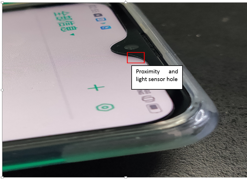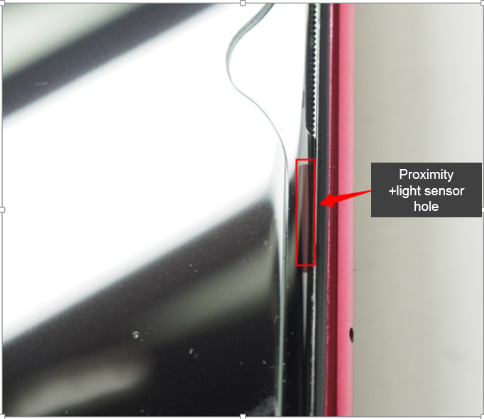 Untuk mendapatkan desain layar yang unik dari seri Winter (A1K), kami menggunakan micro-slit proximity dan light sensing scheme (ditunjukkan dibawah); tetapi posisi sensor proximity dan sensor cahaya mudah ditutupi oleh film pelindung, yang akan menyebabkan kerusakan pada sensor proximity dan sensor cahaya.