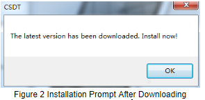 Tools akan mendeteksi apakah ada pembaruan ketika diaktifkan, dan latar belakang akan mulai mengunduh paket instalasi terbaru secara default begitu pembaruan terdeteksi. Setelah versi terbaru diunduh dan diverifikasi, prompt akan muncul dan meminta pengguna memilih untuk instalasi, seperti yang ditunjukkan pada Gambar 2: