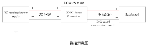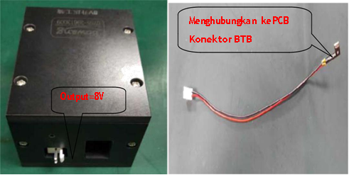 Konektor BTB dari PCB dapat dihubungkan ke ujung output tegangan 8V; tegangan input berkisarkan dari 4V ke 5V bisa dikeluarkan pada tegangan 8V (±0.2V) melalui boost converter.