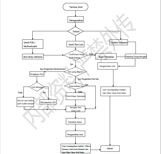 Sehubungan dengan otentikasi tipe, kuantitas, dan pemberian hadiah, maka pusat akan menelepon user untuk mengecek otentikasi dari RO tersebut. Oleh karena itu, data yang tercantum dalam RO harus akurat dan harus sesuai dengan skema cleaning yang dilakukan kepada user.