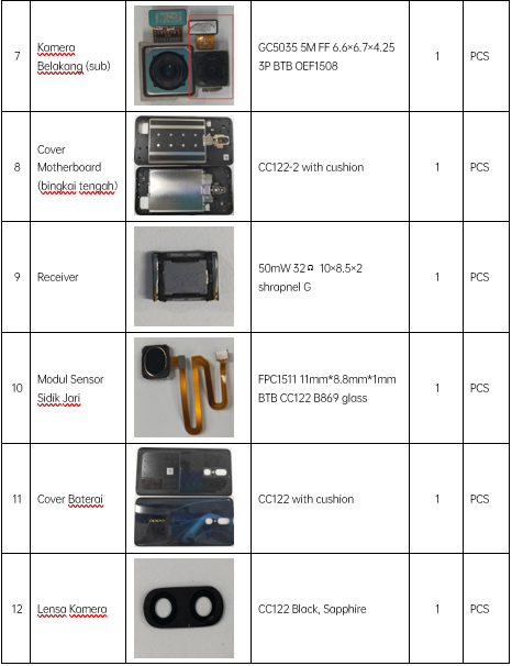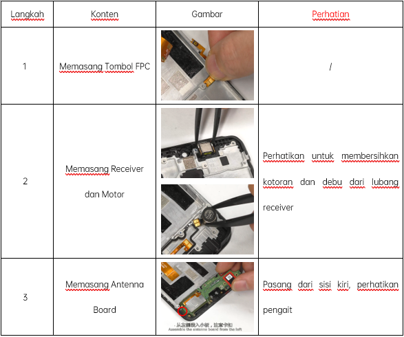 | 18 | Uji Panggilan | Jika ponsel ada kartu SIM operator, tekan nomor telepon operator yang sesuai. Jika tidak ada kartu, uji dengan 112 (disarankan melakukan panggilan dengan kartu SIM), periksa receiver, jika panggilan normal, tidak ada suara bising, tidak ada suara kecil, maka uji sukses. |