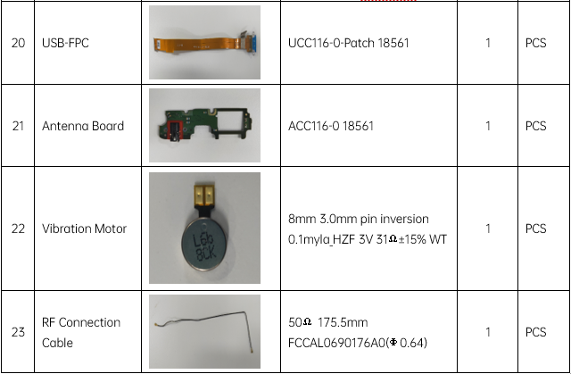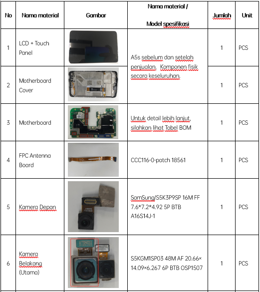 Catatan: Tabel ini hanya dipakai untuk menunjukkan nama setiap komponen, bukan untuk persiapan inventaris. Silakan mengacu ke “Price list of Commonly-used Materials and Accessories” untuk persiapan inventaris.