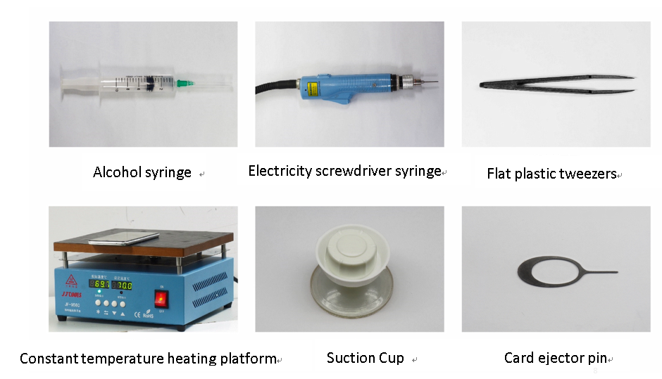 - Sebelum memulai perbaikan, anda harus memasuki Kawasan Perindungan ESD dan mengenakan gelang anda. Gunakan sarung tangan untuk menghindari korosi dan sidik jari. Lindungi jendela dan layar display dengan plastik film untuk menghindari debu dan goresan. Saat membersihkan bantalan logam, anda harus menggunakan kain lembut / sikat ESD dan isopropanol. Tidak diperbolehkan menggunakan penghapus karena akan menggores permukaan dan akan menyebabkan oksidasi dan korosi di kemudian hari. Komponen ā komponen mekanis (kecuali penutup pelindung dan bagian yang bengkok), yang tidak dapat diperbaiki jika terjadi kegagalan, hanya dapat diganti, jika komponen tersebut tidak disolder. Setelah melepas dan mempertahankan penutup pelindung, pastikan untuk menggantinya dengan yang baru. Jika tidak, kebocoran frekuensi tinggi dapat berpengaruh terhadap perangkat. Selalu gunakan suku cadang OPPO yang asli. Periksa sambungan komponen ā komponen yang disolder, yang berkaitan dengan kesalahan yang ditunjukkan (seperti, konektor atau sakelar yang disolder) dan solder ulang jika diperlukan (hanya pusat perbaikan yang dapat melakukan kegiatan solder bebas timah). Lepaskan fluks solder yang berlebih setelah melakukan kegiatan penyolderan. Pasang handset dengan torsi sekrup standar (lihat Pengantar Panduan Servis).