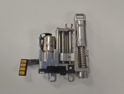 (1) Gunakan obeng pembuka sekrup untuk melepaskan 1 buah sekrup (no.3) yang menghubungkan rangka tengah (kecil) dengan motor. (2) Lepaskan 3 buah sekrup (no.2) yang menempel pada motor, teteskan 0.1 ml etanol pada FPC, setelah beberapa saat gunakan pinset anti-statis untuk melepasakan FPC. (3) Dorong motor dari sebelah kiri, lalu angkat dari bagian bawah untuk mengeluarkan motor, kemudian keluarkan bracket penutup penghubung. |