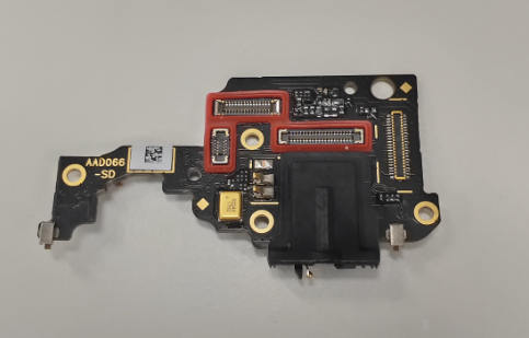 (1) Lepaskan PCB Bawah dari sudut kanan, jangan sampai merusak bagian kecil ataupun memutuskan FPC (lingkaran merah pada gambar) (2) Saat melepaskan motor teteskan 0.1 ml etanol pada bagian sisinya, gunakan pinset anti-statis untuk mengangkat motor. (3) Saat melepaskan IC fingerprint, teteskan 0.1 ml etanol, kemudian lepaskan FPC fingerprint secara perlahan, lepaskan sensor fingerprint. |