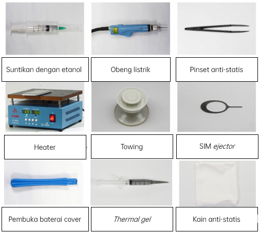 Sebelum melakukan perbaikan, harap berada di area anti-statis dan memakai gelang anti-statis.