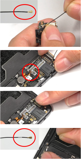 | 7 | Memasang kabel RF pada ujung PCBAtas, PCB, dan kamera belakang | ![]() |