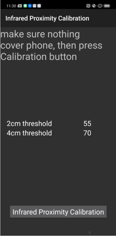 Alur kalibrasi: Tekan telepon > masukkan *#899# > pilih AfterSale Devices Calibration > masukkan angka ā6776ā > Infrared Proximity Calibration > Fingerprint Optical Calibration, untuk detail kalibrasi dapat dilihat pada table di bawah ini.
