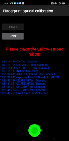 | Cara | 1. Pastikan tidak ada tangan atau benda yang menutupi, lalu tekan Infrared Proximity Calibration; | 2. Klik āStartā untuk memulai kalibrasi, setelah selesai akan langsung masuk ke Fingerprint Optical Calibration, klik āStartā untuk memulai kalibrasi; | 3. Letakkan bantalan karet berwarna kuning sesuai perintah yang muncul āplease place the yellow rubberā, bagian yang tidak rata menghadap bawah. tekan āNEXTā, sampai muncul perintah āplease place the black rubberā muncul; |