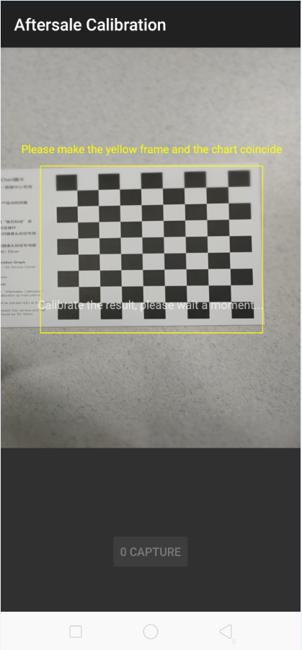 1. Sejajarkan kotak kuning dengan sudut-sudut pada chart, kemudian ambil gambar, kemudian tunggu sampai hasil kalibrasi selesai dan muncul tuisan āPASSā atau āFAILā, jangan lakukan apapun pada ponsel.