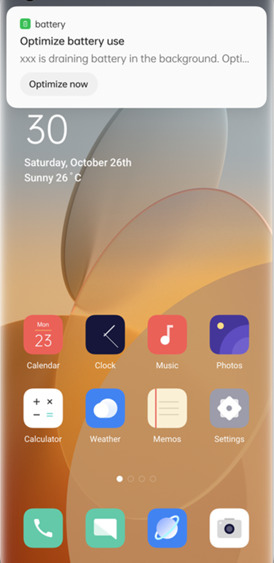 The system will notify you when your OPPO phone detects an abnormal power consumption. This notification contains the applications that are draining your smartphone. Then the system will automatically close these apps or ask the users to close them to prolong the battery life.
