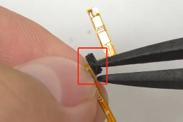 (1)、把電源鍵裝入,把電源鍵按鍵壓緊電源鍵FPC,接著插入電源鍵支架固定,注意安裝電源鍵支架時卡扣朝向手機底部,插入支架後壓緊,保證支架不翹起,按照定位柱位置把電源鍵FPC貼緊在中框的雙面膠上,用鑷子按壓確保貼緊並壓實;音量鍵安裝同上; |