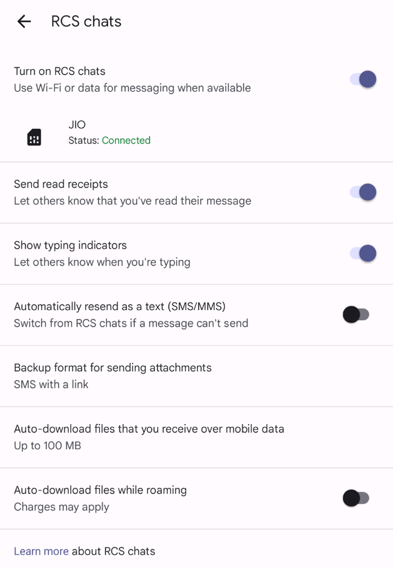 Note: For the features of RCS chat to work, both the sender and recipient must have it enabled.