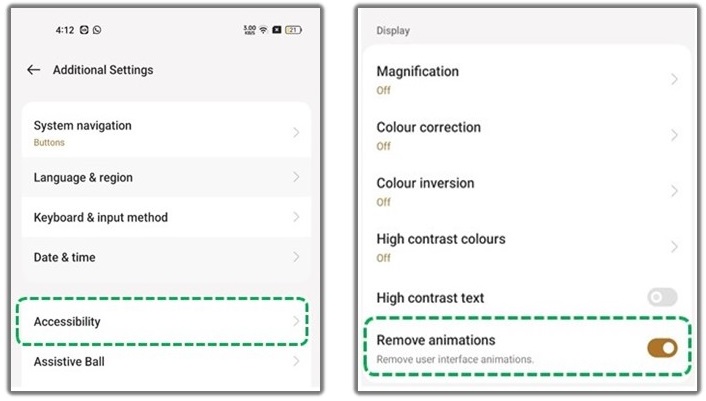 Go to [Settings] > [Additional Settings] > [Accessibility]> [Vision] > Enable [Remove Animations].