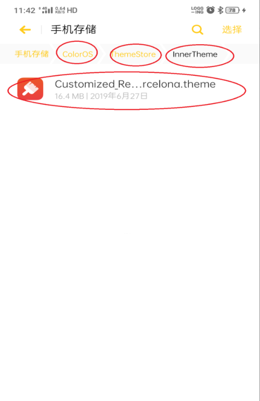 3. เข้าสู่การจัดการไฟล์มือถือค้นหา เส้นทางโฟลเดอร์ ColorOS / ThemeStore และสร้างโฟลเดอร์ใหม่ InnerTheme