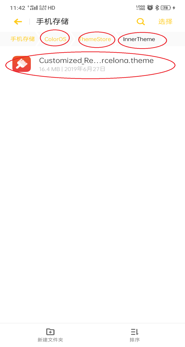 3. မိုဘိုင္းဖိုင္စီမံခန႔္ခြဲမႈထဲသို႔ထည့္ပါ၊ ColorOS / ThemeStore ဖိုင္တြဲလမ္းေၾကာင္းကိုရွာၿပီးဤလမ္းၫႊန္ေအာက္ရွိ InnerTheme ဖိုင္တြဲအသစ္တစ္ခုကိုဖန္တီးပါ (စာလုံးအႀကီးအေသးသတိျပဳပါ)