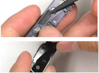 | 7 | Remove the small middle frame and clean the double-sided tape | (1) Avoid damaging FPC when removing the small middle frame from the left side (the red circle is circled in the figure); (2) Use the plastic tweezers to open the small middle frame decorative piece from the lower right corner of the small middle frame( avoid the damaging FPC ); (3) Use a screwdriver to remove the 2 (2nd) screws on the small middle frame bracket. (4) For the residual double sided adhesive parts that are difficult to clean, use alcohol to clean them. |