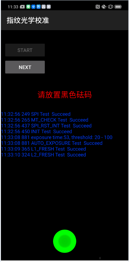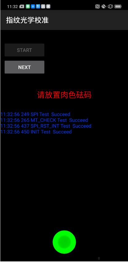 | Operation | 1. Make sure there is no material covering the phone, then press the infrared access calibration button. | 2. Click "START" to start calibration after it jumps into the fingerprint optical calibration, |