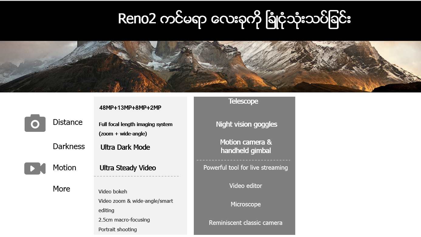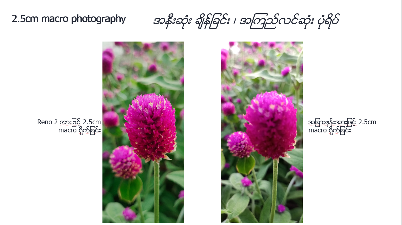 Reno 3/Reno 3Pro series တြင္ Marco Mode ေပၚလာျခင္းမရွိေၾကာင္းကို အသိေပးမႈ။