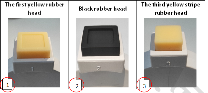3.According to the prompt "please place the black rubber head", put the black rubber on the fingerprint spot area (the groove is facing down), click "NEXT" until the "please place the yellow stripe rubber " prompts to remove the black rubber ; |