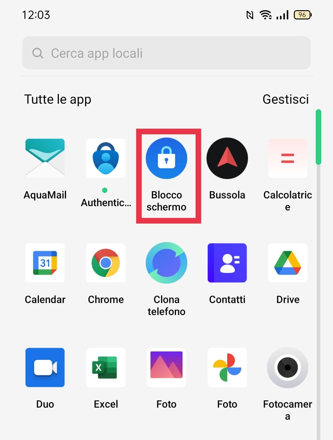 Vai alla schermata principale del tuo smartphone OPPO e premi l'icona Blocco schermo