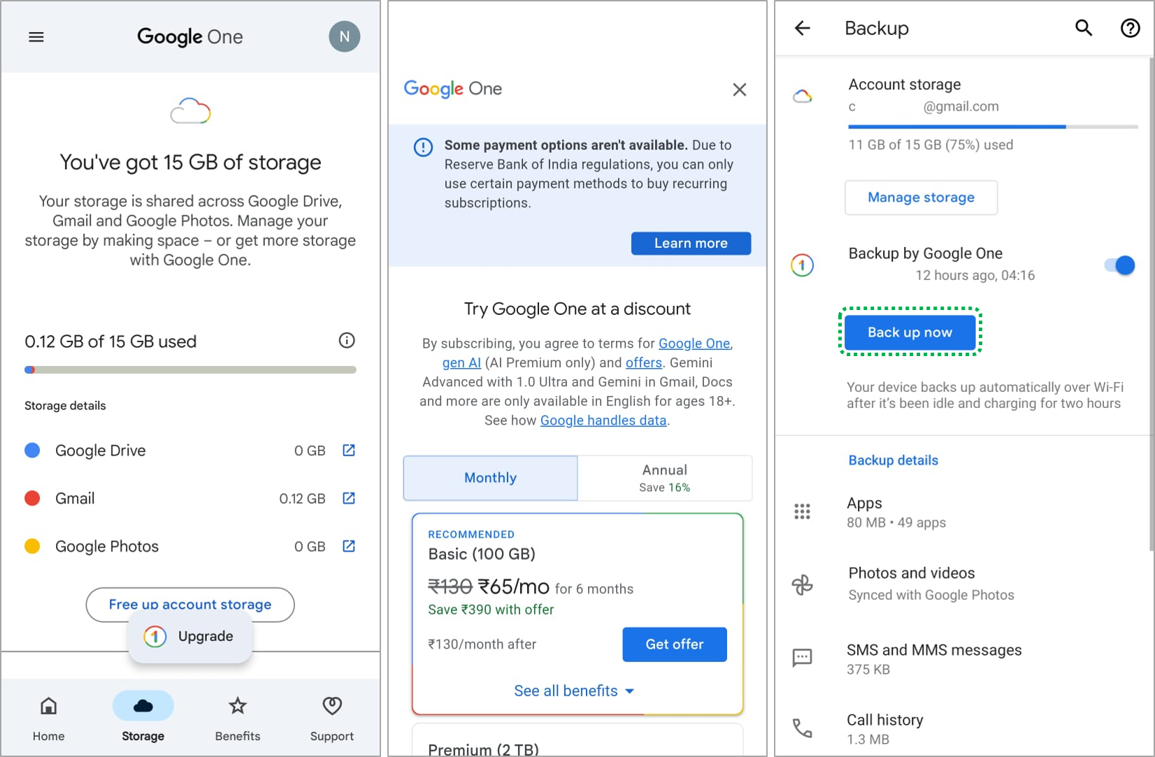 Storage Plans: Purchase and manage Google One storage plans for additional space.