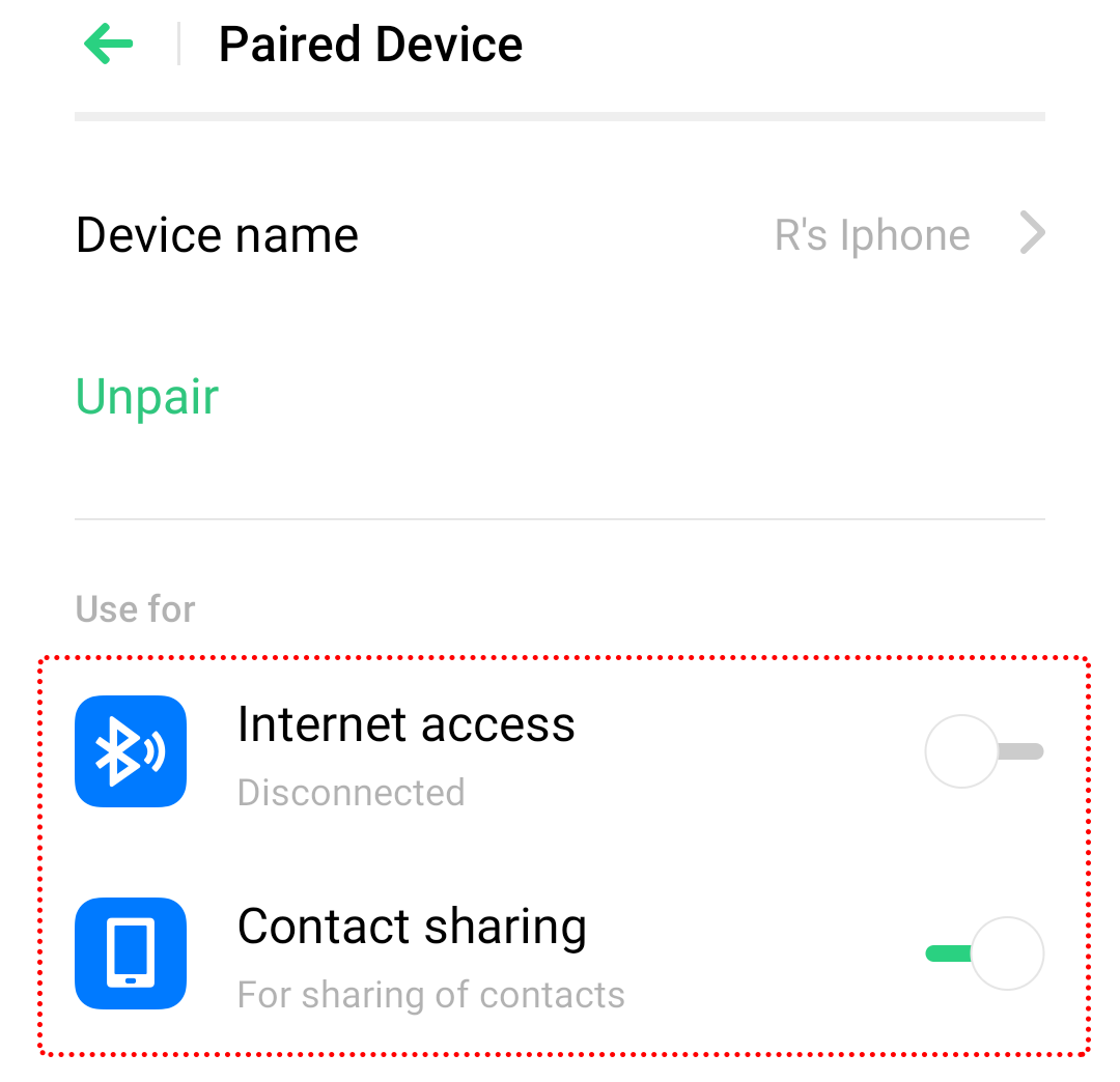Situation: You want to set what you share with the paired Bluetooth devices.