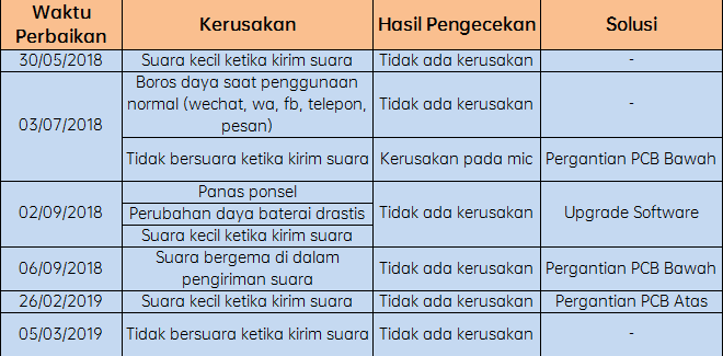 Cara Penanganan Teknisi dalam Kasus ini: Pelanggan telah datang ke Service Center untuk memperbaiki ponselnya beberapa kali, tetapi dapat dilihat sebagian besar waktu teknisi tidak dapat mereproduksi masalah yang terjadi. Teknisi mengambil langkah untuk melakukan upgrade software, mengganti PCB Bawah, dan PCB Atas tetapi masalah tetap tidak dapat terselesaikan.