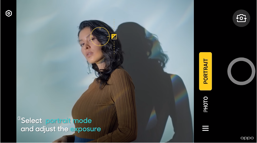 03 Open camera, tap [PORTRAIT] and adjust the exposure.