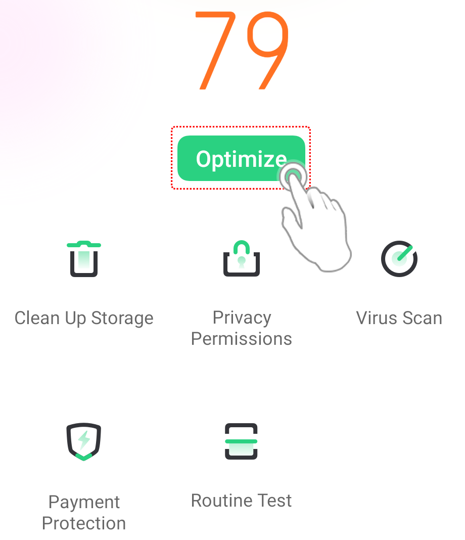 1. Elimina los archivos basura de la memoria caché y escanea virus en [Centro de Seguridad] > [Optimizar].