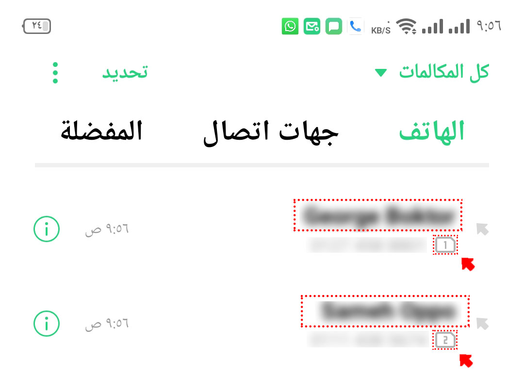 انتقل إلى صندوق الوارد للرسائل أو سجل المكالمات في تطبيق الهاتف وشاهد الرمز الفرعي 1 أو 2 أسفل اسم مرسل الرسالة أو المتصل.