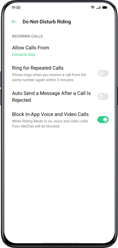 When Driving Mode is on, voices and video calls from WeChat and Messenger will be blocked.