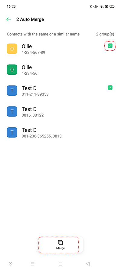 You can merge the duplicate contacts (with the same name) on your OPPO phone contacts list. When you add a similar contact to your phone contacts, it will automatically prompt you if you want to merge the contacts. Once merged, the contact will display the information of the duplicate contact.