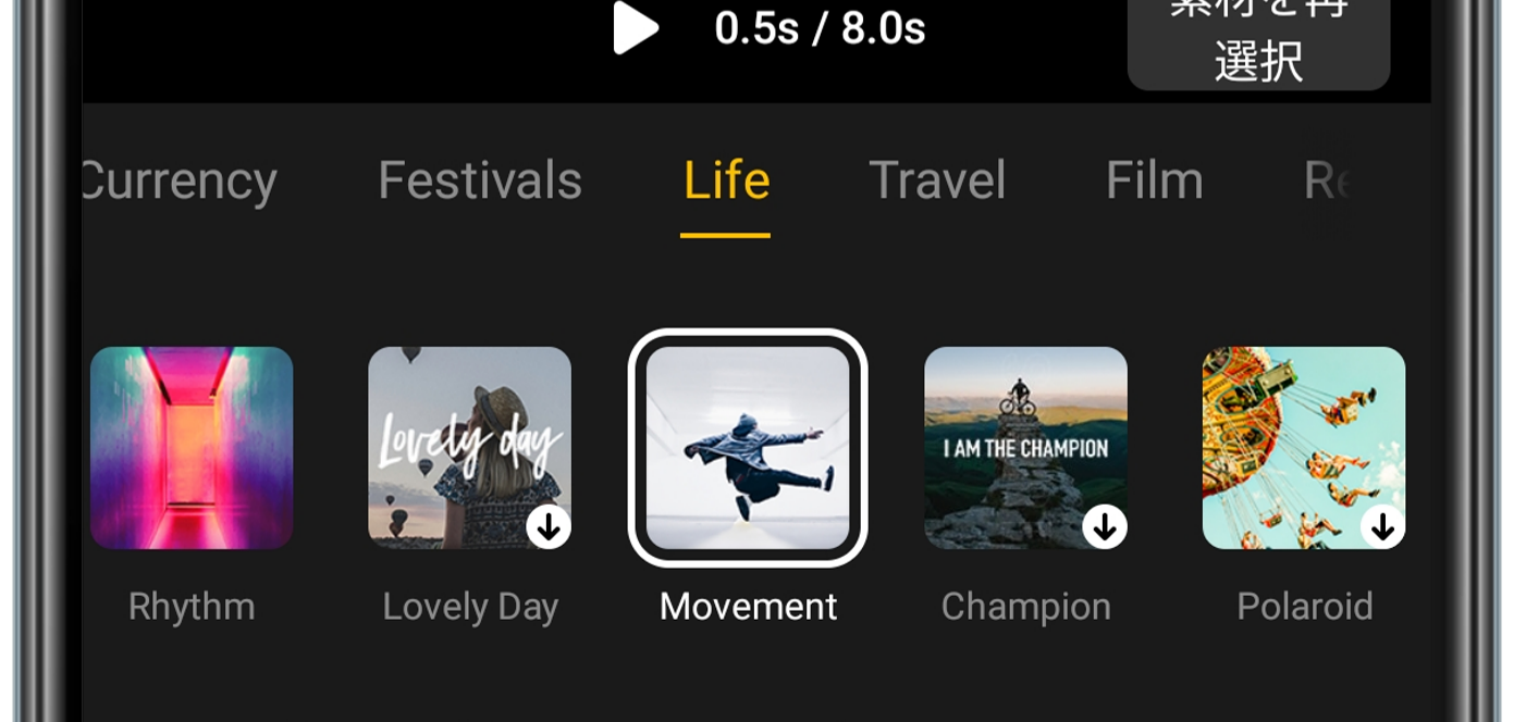 難しい編集方法を覚えなくても、テンプレートが自動的に素敵な演出を選択し、音楽のリズムにあわせて素晴らしいストーリーが生成されます。