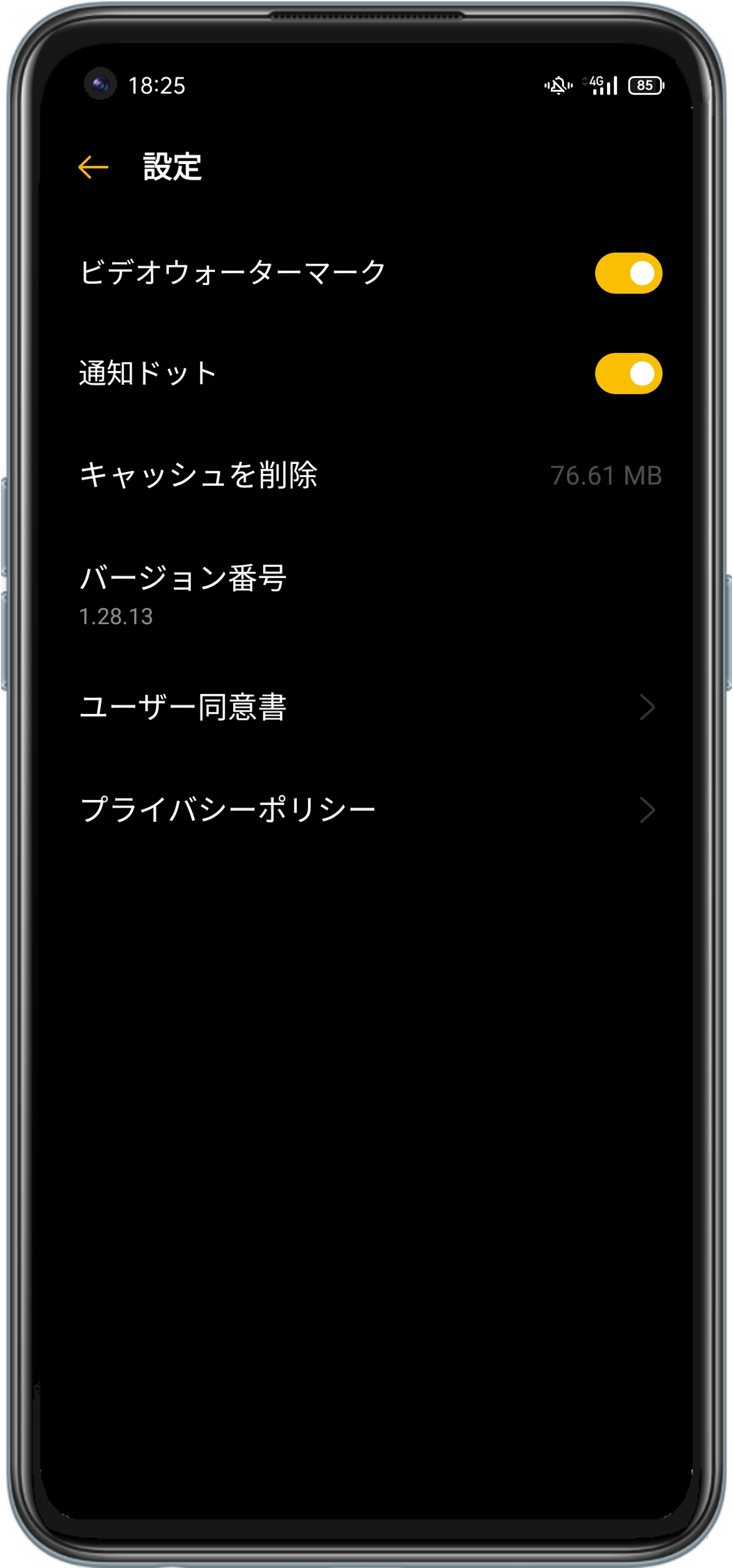 作成した動画の右上にある「Soloop」ロゴのウォーターマークが不要な場合、Soloopのホーム画面にあるマイページへ移動し、 右上隅にある六角形の「設定」アイコンをタップして、「ビデオウォーターマーク」にてON/OFFが可能です。