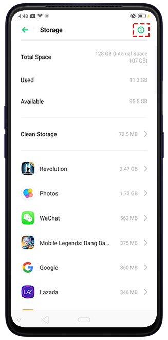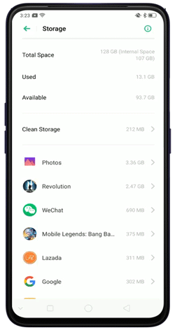 You can also view your phone's performance from the storage. Go to [Settings] > [Additional Settings] > [Storage] and tap