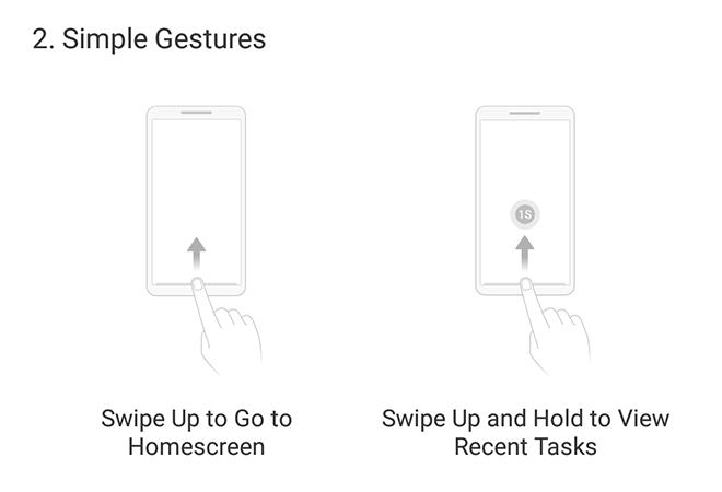 Swipe up from the left bottom to return to the upper page, swipe up from the middle bottom to get to the Home screen, and swipe up from the right bottom to view recent tasks.