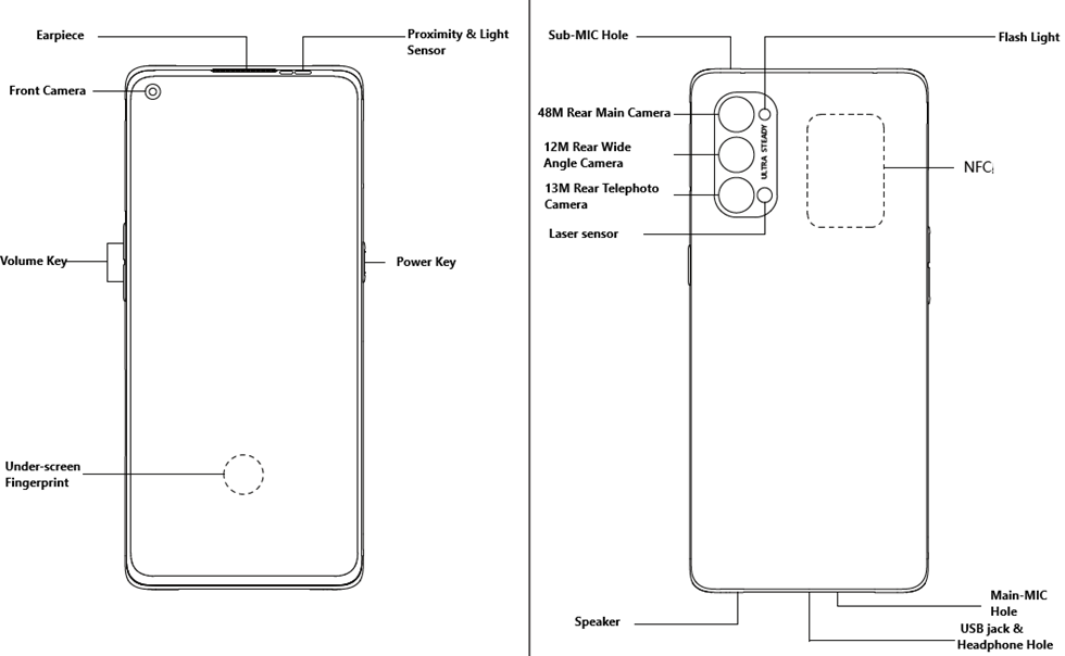 Lubang Jarum Kartu SIM, Lubang Mikrofon, Port Type-C, Lubang Speaker |