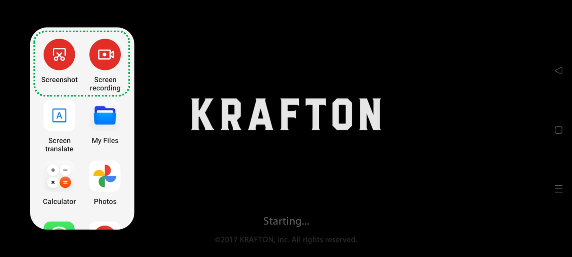 Open a [game] > swipe from the corner to the right to bring up[Game Assistant] > select ["Take a screenshot"] or ["record the screen"] > and then turn the corresponding icon on or off as needed.