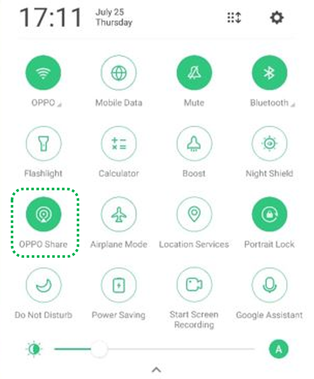 Go to: [Drag the drop-up option from down to up] > Enable [OPPO Share].
