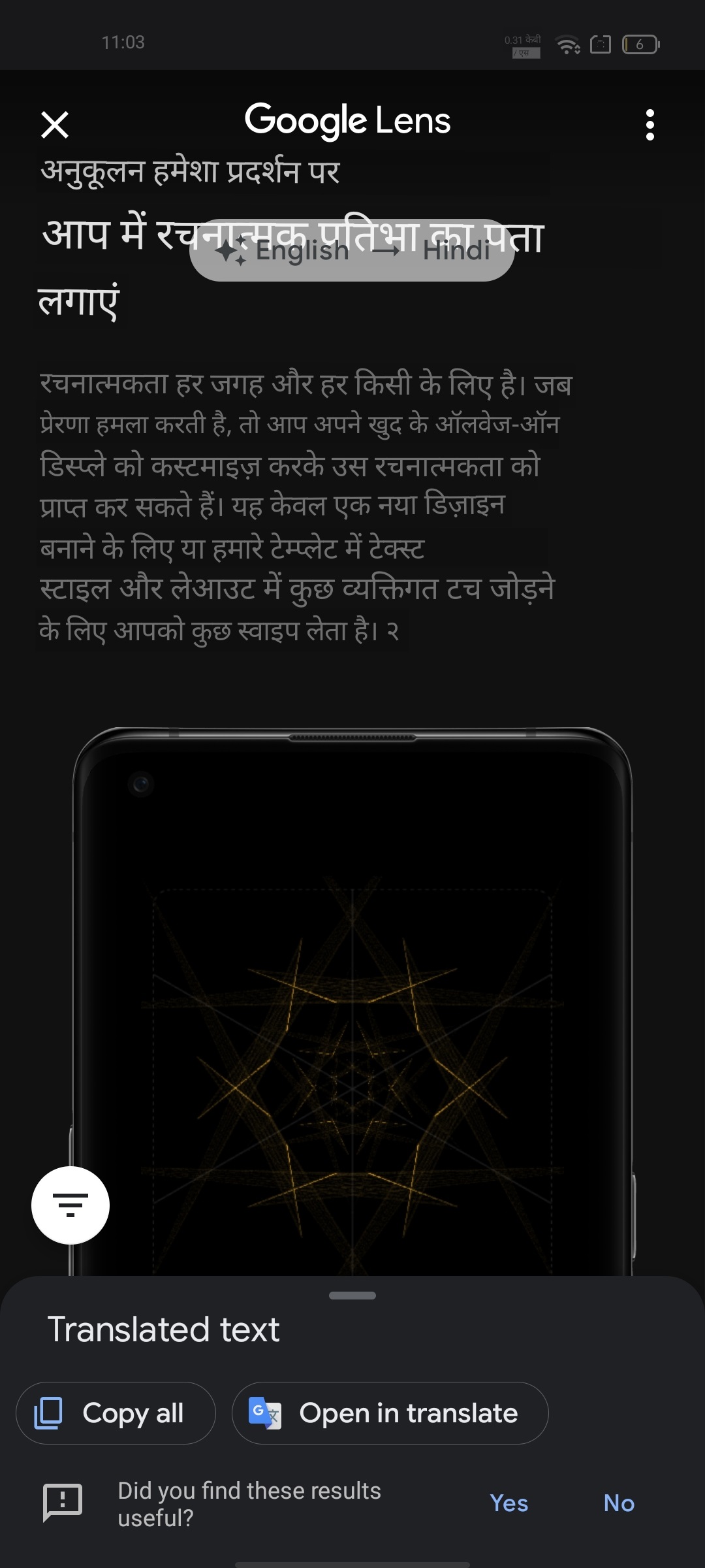 After the partial screenshot is taken, tap "Translate" to translate the screenshot.