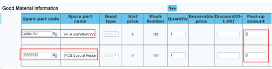 4.2.2 For the second line: Record the visual code “S000008” in the “spare part code”, and charge the actual fee.